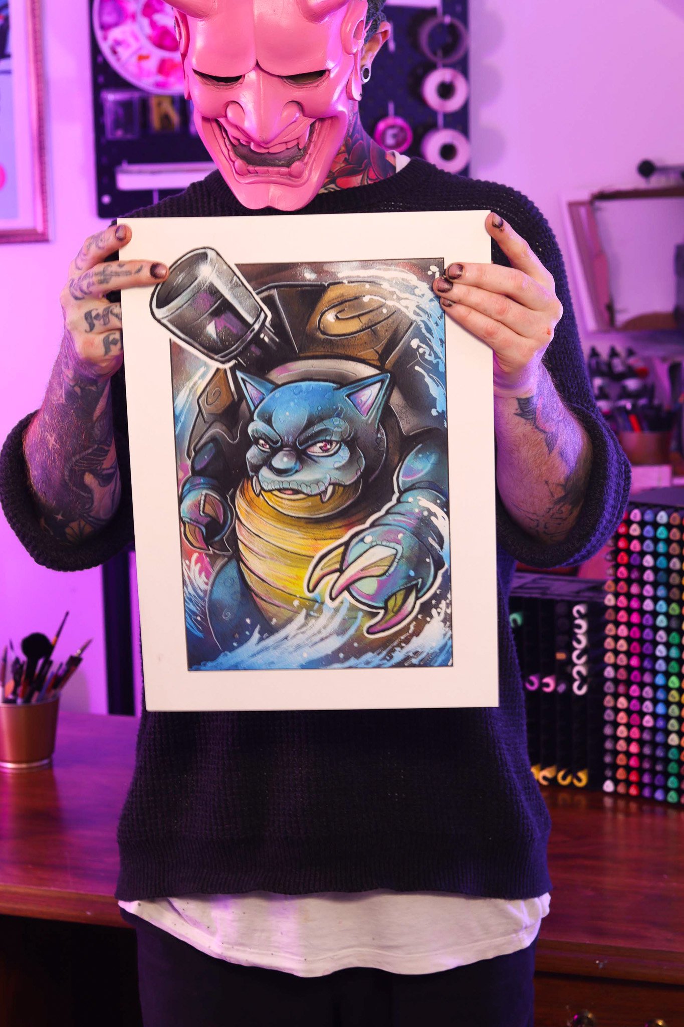Blastiose, part of a set of 3 paintings of the original fully evolved starter Pokemon.