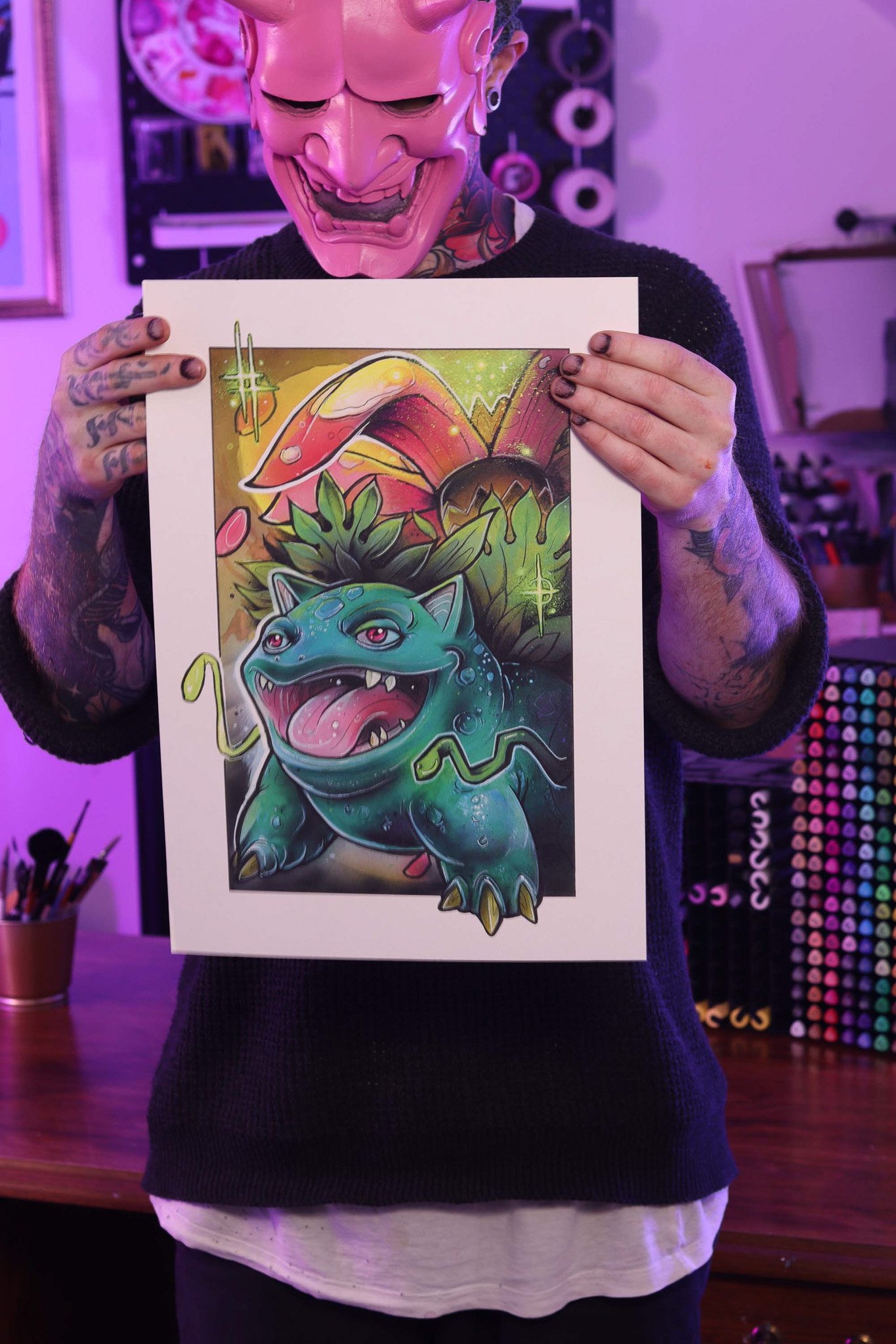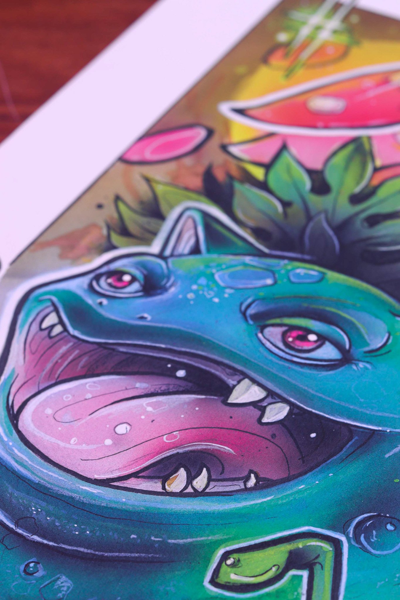 Venasaur, part of a set of 3 paintings of the original fully evolved starter Pokemon.